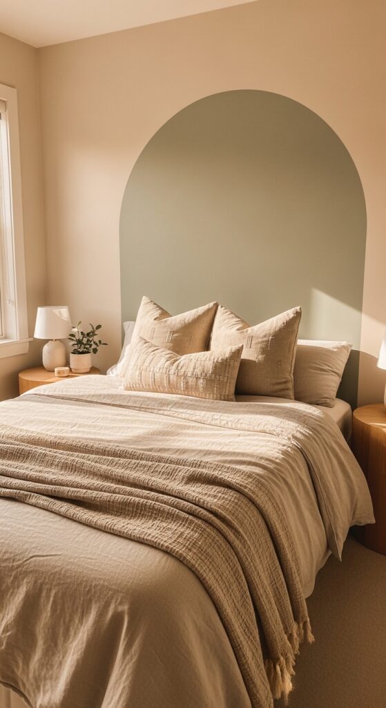 Design Idea: A painted arch acts as a unique headboard alternative.